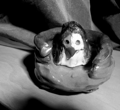 Second task was to create again a pot, with the technique of sneaks. Again I started a round simple shape, getting it to the size I wanted and when I looked at it surly looked like a sneak so I just added the head.